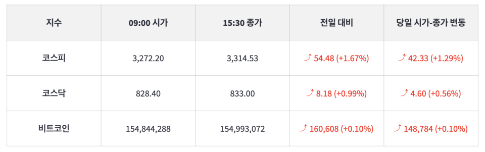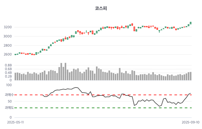 | 한스경제=김도현 기자 | 10일 코스피는 전거래일보다 1.67% 상승 마감했다. 한국거래소에 의하면 코스피 지수는 이날 오전 09시 3272.2에 개장해 장중 3317.77을 고점 기록한 후 오후 3시 30분 3314.53로 상승 마감했다. 전거래일 대비 54.48포인트(1.67%) 상승했으며, 이날 시작가 대비해서는 42.33포인트(1.29%) 상승한 것이다.