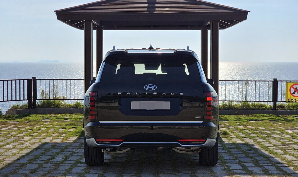 후면은 비교적 간결하다. 매끄럽게 다듬은 트렁크 라인 위로 중앙의 대형 현대 엠블럼과 ‘PALISADE’ 레터링이 존재감을 더욱 부각시킨다. 기존 모델과 달리 머플리 팁은 하단으로 감춰 대형 하이브리드 스포츠유틸리티차(SUV) 특유의 정숙함을 강조한 모습이다.