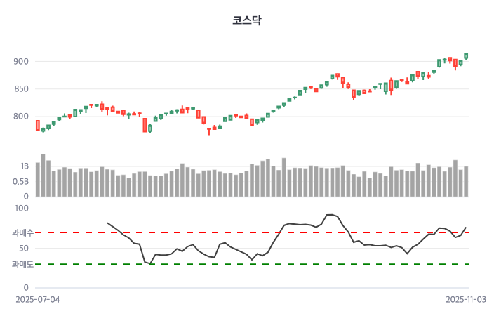 코스닥 지수는 이날 906.19에 출발해 913.94를 고점으로 기록한 뒤 914.55로 거래를 마쳤다. 전거래일 대비 14.13포인트(1.57%) 상승했고, 시작가보다는 8.36포인트(0.92%) 상승했다.