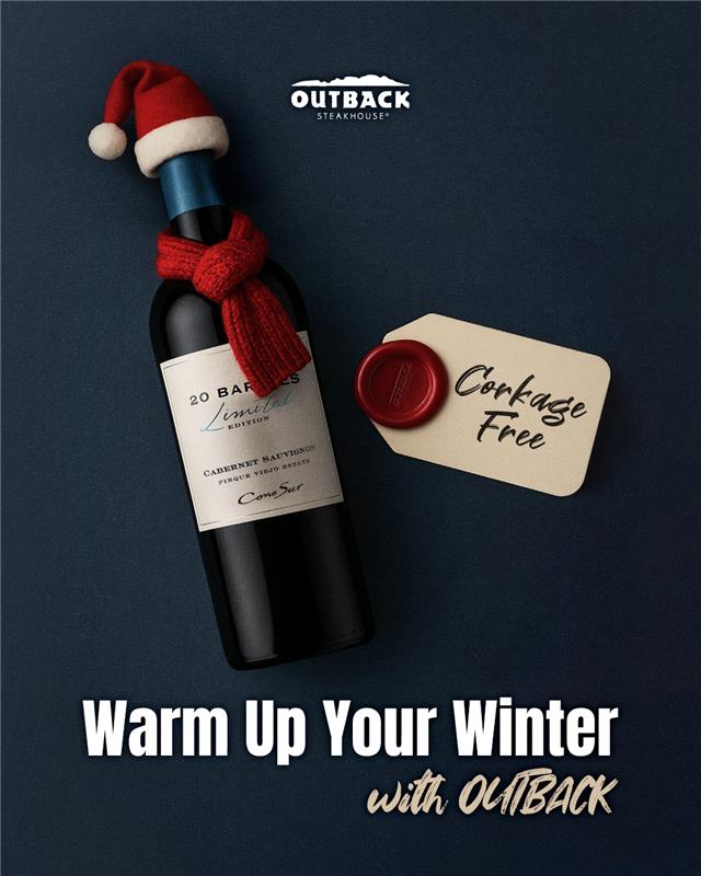 아웃백은 이번 프로모션 와인 주문 고객들에게 보다 특별한 연말 다이닝 경험을 선사하기 위해, 할인 판매와 더불어 산타 모자와 겨울 머플러 장식 등 크리스마스 느낌이 나는 소품들을 와인 보틀넥에 장식해 제공할 계획이다.