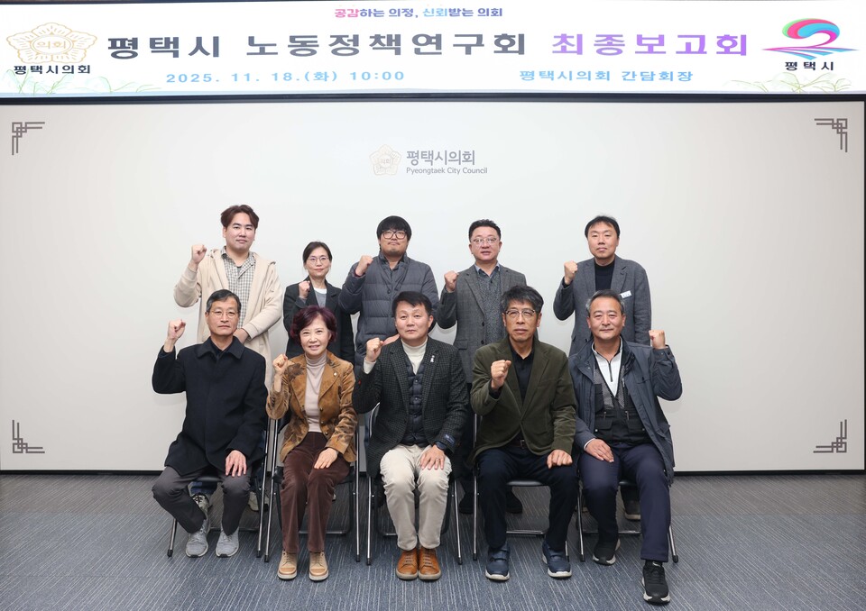 | 한스경제=김두일 기자 | 평택시의회 의원 연구단체인 ‘평택시 노동정책 연구회’(대표 이기형 의원)는 18일 시청 간담회장에서 정책연구용역 최종보고회를 열고, 평택시에 적합한 노동정책 수립을 위한 연구 성과를 공개했다.