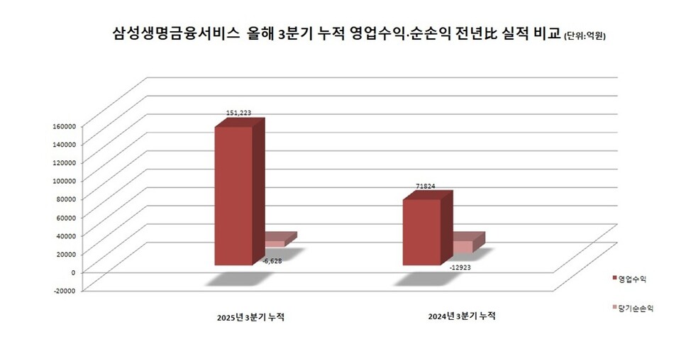 이 같은 확대에 삼성생명금융서비스의 실적 성장세도 주목된다.올해 3분기 누적 영업수익은 1512억원으로 지난해 동기(718억원) 대비 110.5%나 증가했다. 이는 지난해 연간 영업수익(986억원)을 이미 넘어선 수치다. 같은기간 당기순손실은 66억원으로 지난해 동기(129억원) 대비 적자폭이 48.7% 줄며 수익성도 개선세를 보였다.