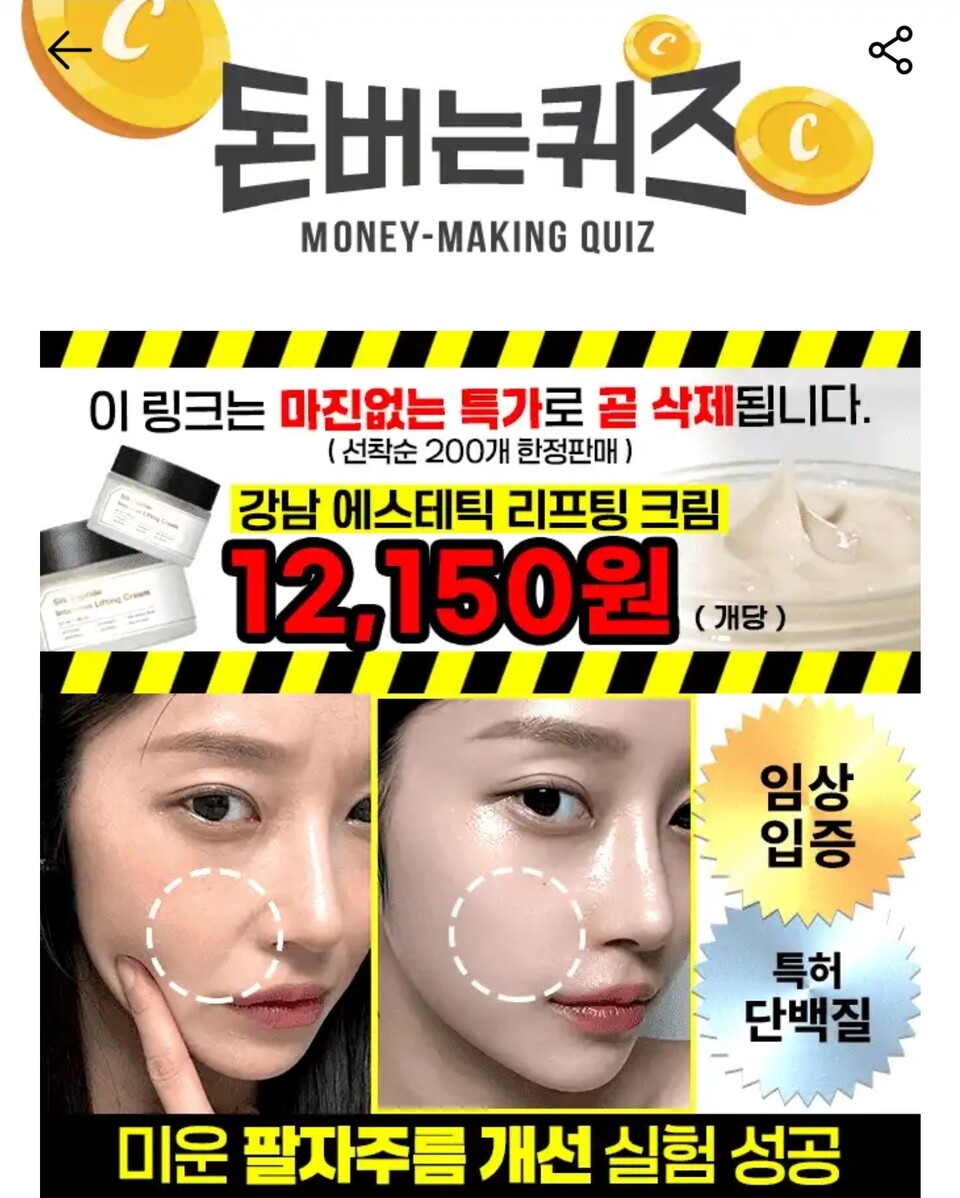 성분에디터 리프팅크림 캐시워크돈버는퀴즈 문제는 "단 2주만에 OO.80%"이다.