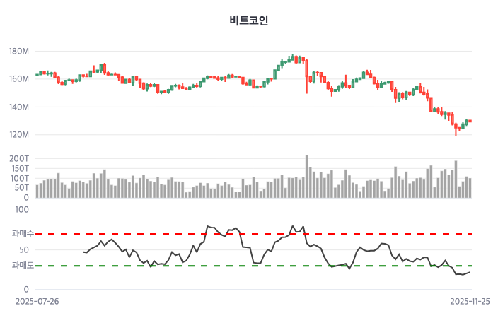 한편 비트코인 가격은 하락 중이다. 코인마켓캡에 의하면, 비트코인은 이날 오후 3시 30분 현재 129,469,696원에 거래 중이다. 130,559,488원을 최고점을 찍고 0시 대비해서는 814,120원(-0.62%) 하락한 가격이다.