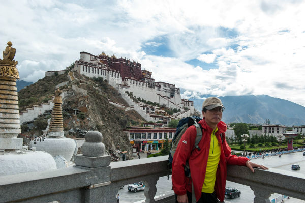 ▲ 라싸 포탈라궁 전망대에서 선 저자. 포탈라궁과 라싸광장이 한 눈에 들어온다. 김성태 제공