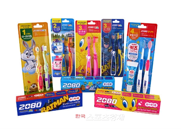 또한 2080 키즈 치약&칫솔은 구강관리의 첫 습관을 형성하는 중요한 시기에 양치에 대한 흥미를 가질 수 있도록 어린이가 좋아하는 로보카 폴리, 배트맨, 트위티 등의 캐릭터와 딸기, 소다버블 등의 향과 맛을 적용했다.