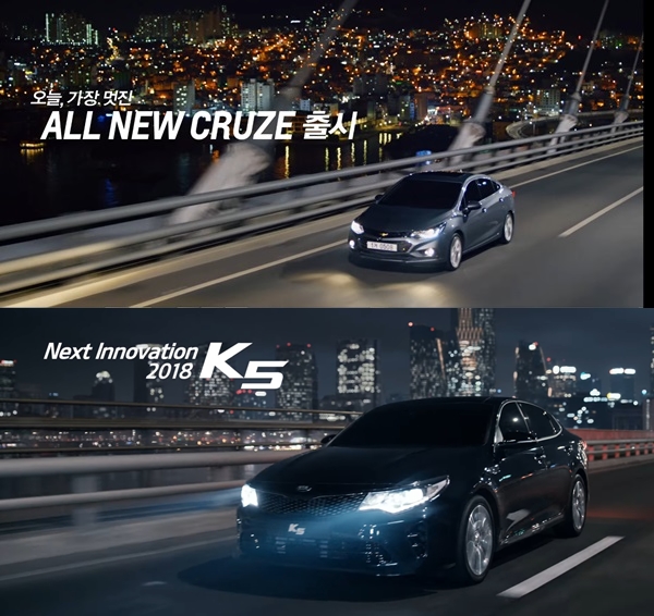 [한스경제 김재웅] 찬란한 도시의 밤. 도로를 달리는 멋진 세단. 그리고 인생을 즐기는 청년들. 요즘 방영 중인 쉐보레 올 뉴 크루즈와 기아차 K5 GT 광고 얘기다. 자동차 업계가 고성능 모델 광고로 젊은 층을 향한 '화이팅' 메시지를 던졌다.